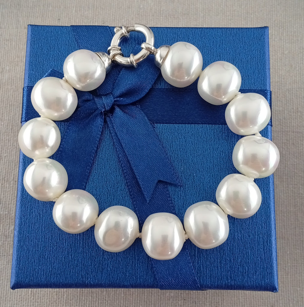 Pulsera Plata tipo Rosario piedra blanca