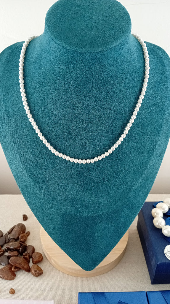 Collar Perlitas Pequeñas Plata con Angelito protector