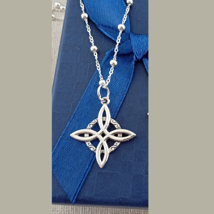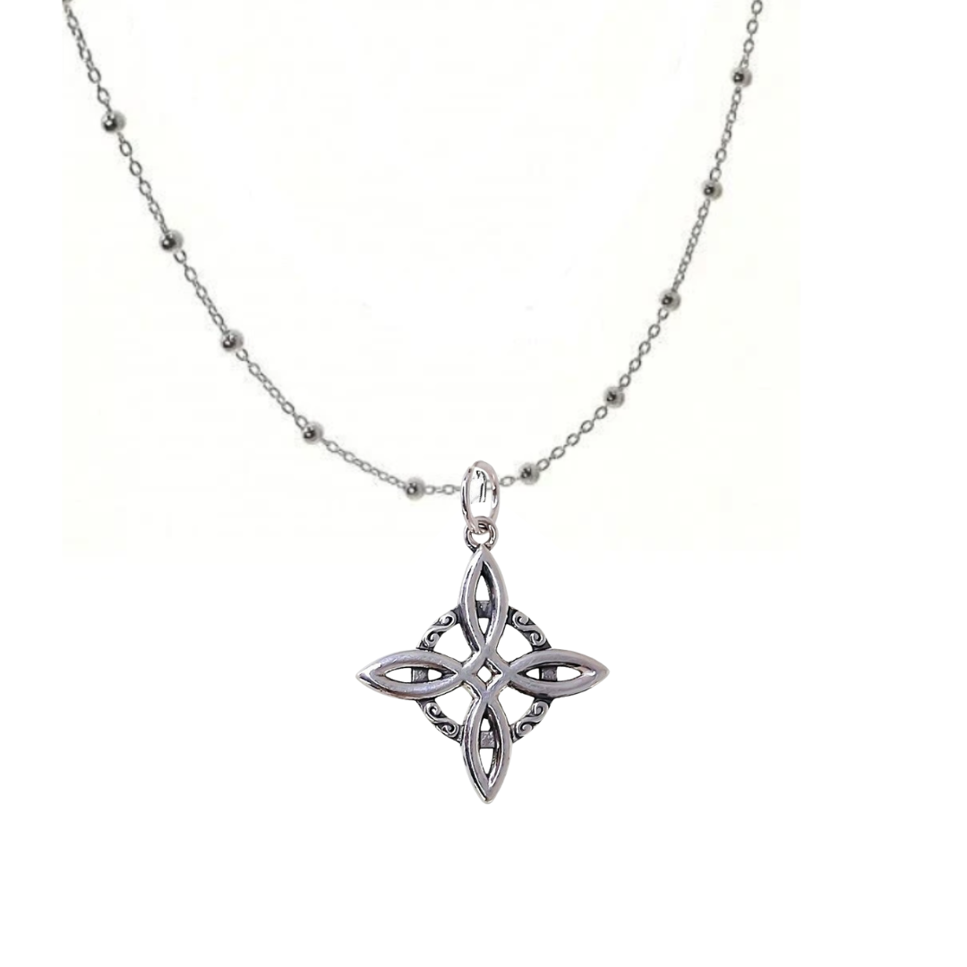 Colgante Nudo de Bruja Plata con cadena de Bolitas