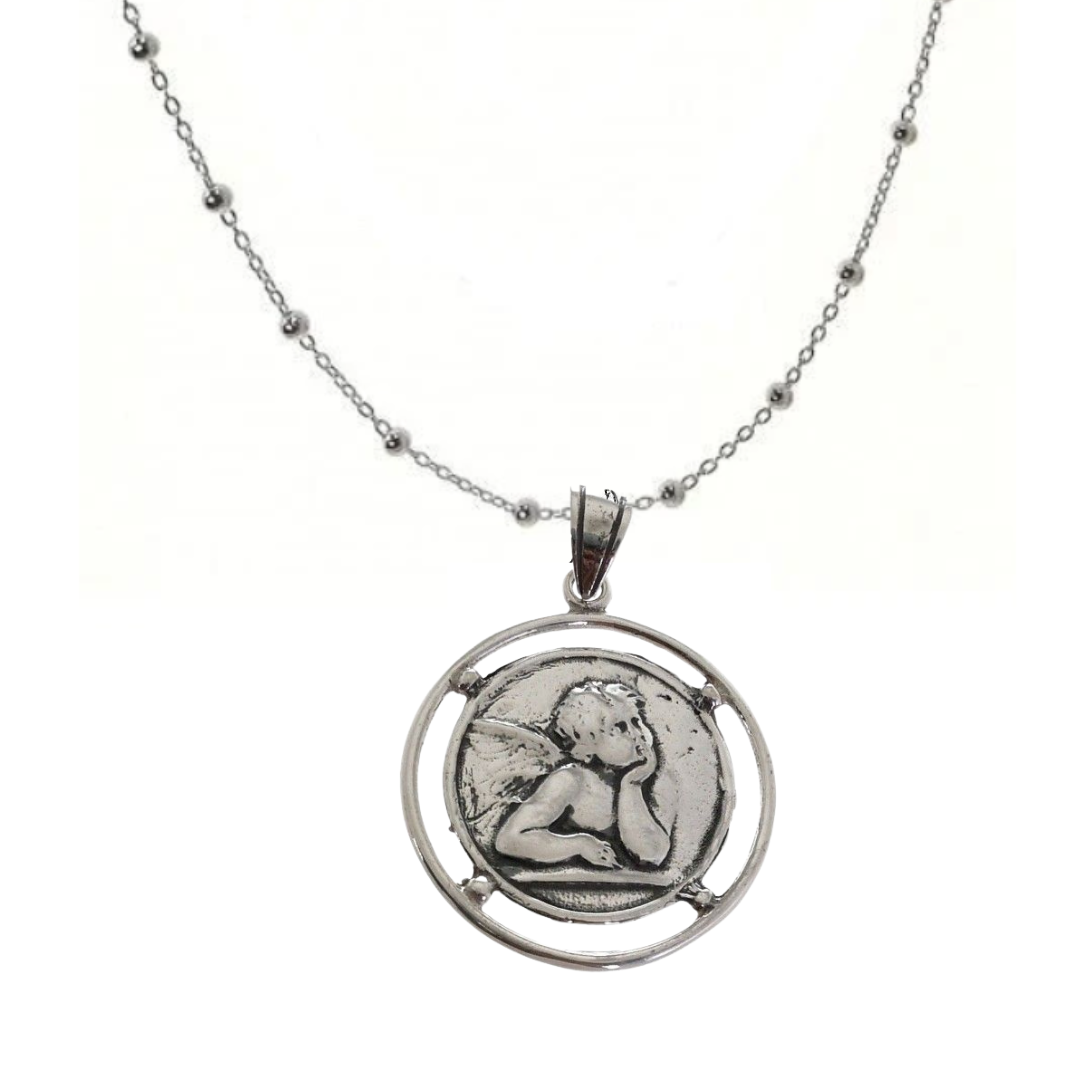 Cadena de Bolitas Plata + Ángel Protector, todo de Plata de primera Ley.